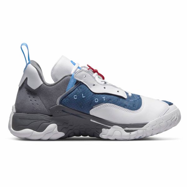 The Jordan Delta 2 “Flint” DO2155-100 is inspired by the classic Air Jordan 13 and features a Flint-colored dimpled mesh upper with reflective accents, complemented by white leather and gray suede overlays. A CLOT branded hangtag with the iconic hologram from the Air Jordan 13 is attached with a red string, a nod to traditional Chinese elements. The tongue sports CLOT’s logo in University Blue on the left and the Jumpman on the right, with additional University Blue accents on the eyelets and heel tab. The white and navy midsole is crafted with React foam for maximum comfort and support.